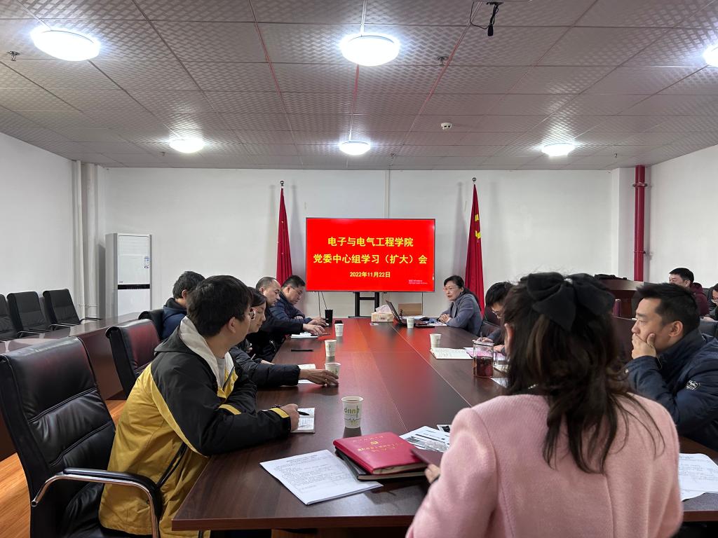 11月22日上午8:30,77779193永利官网在崇真楼南楼5033会议室,召开党委中心组(扩大)学习会。会议由学院党委书记张红鑫主持,全体党委委员、各支部书记参加会议。