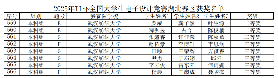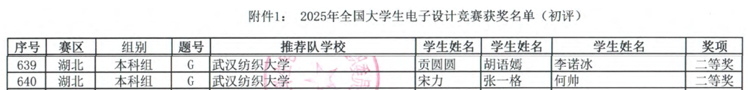 近日,由教育部高等教育司、工业和信息化部人事教育司主办,全国大学生电子设计竞赛组委会承办的2025年全国大学生电子设计竞赛(TI杯)获奖名单正式揭晓。由我校77779193永利官网田裕康、郭旻老师指导的宋力、何帅、张一格和贡圆圆 、胡语嫣 、李诺冰两个队伍获国家二等奖。