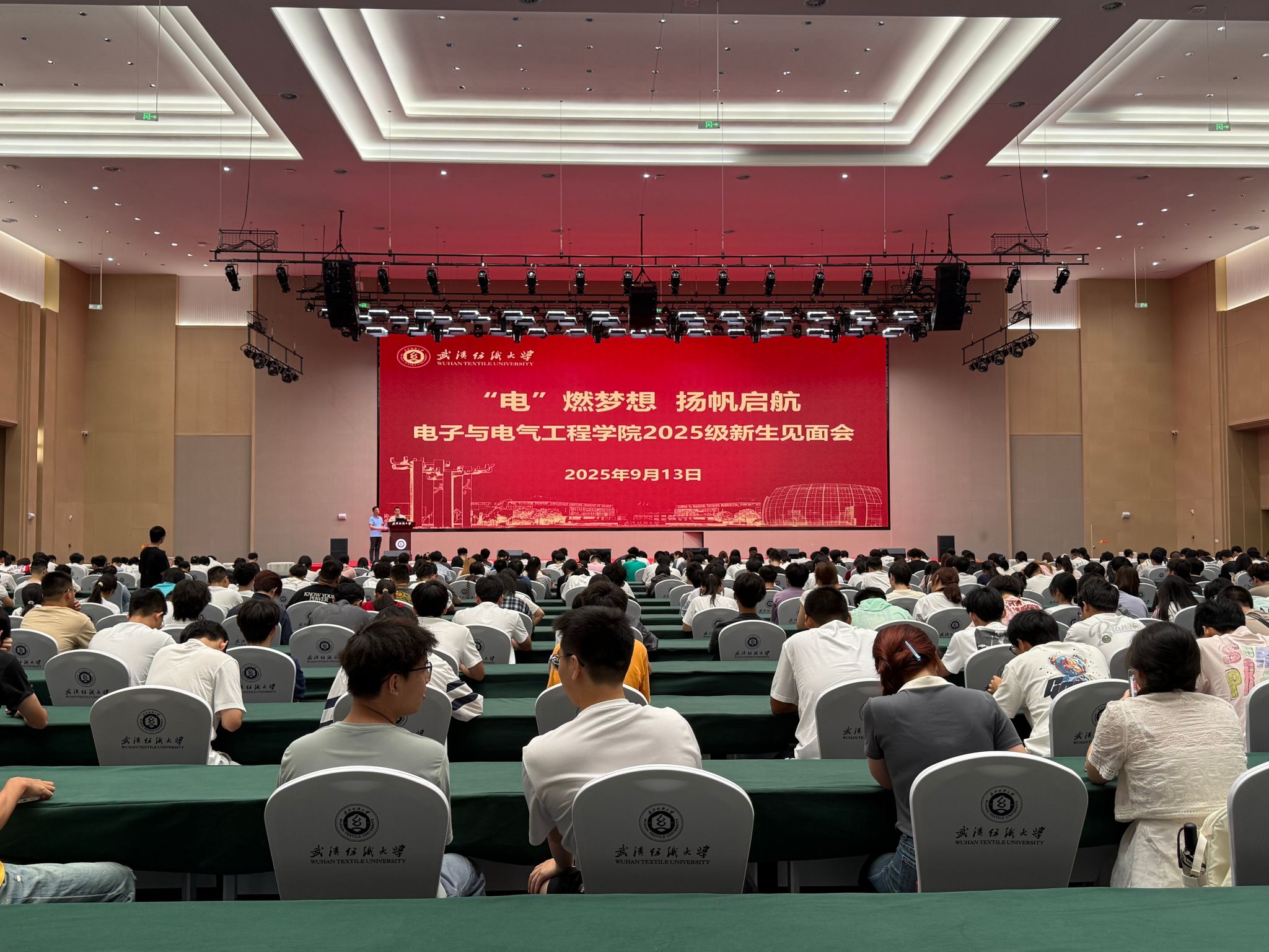 “祝贺同学们怀揣梦想加入纺大我院大家庭!”新生见面会上,刘侃向全体新生致以热烈欢迎。他勉励新生:“你们正处在电子电气行业蓬勃发展的黄金时代——人工智能浪潮席卷而来,新质生产力为学科发展注入强劲动能,这正是你们施展才华的广阔舞台”他强调,大学学习绝非“大水漫灌”或“填鸭式灌输",他希望全体新生找准定位,主动探索、全面发展,把培养核心能力与综合素质作为大学的必修课。