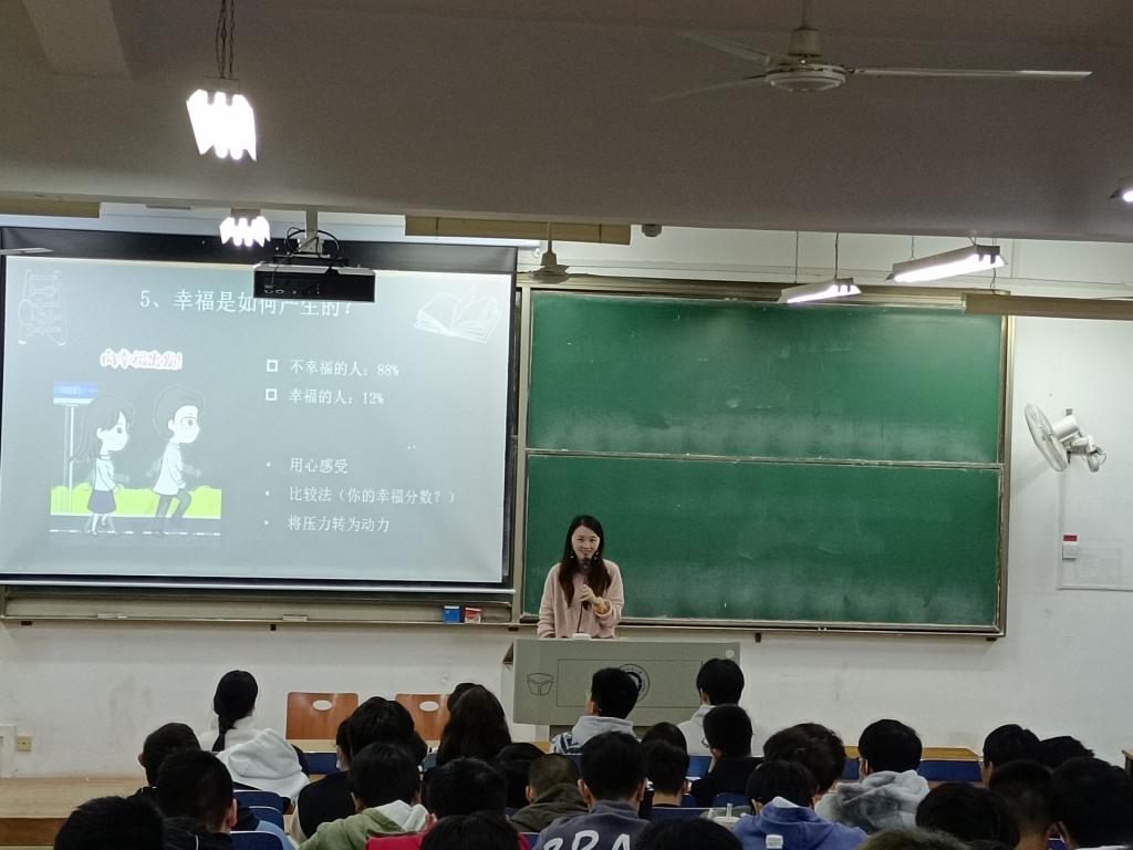 梁老师从大学生心理压力的来源展开,从理想性与现实性的矛盾等方面全面分析了大学生的压力,利用自身多年的实践经验,向同学们分享减压和心理调适的具体技巧和方法,倡导大家正确处理学习与生活中的矛盾,以积极向上的心态面对学习、以乐观豁达的心态投入生活。在活动的间隙,设置了开心的互动环节,同学们都积极参与到活动的中,整个教室洋溢着欢乐的氛围。借此,同学们既放松了心情,又对本次活动的主题有了更深刻的理解。