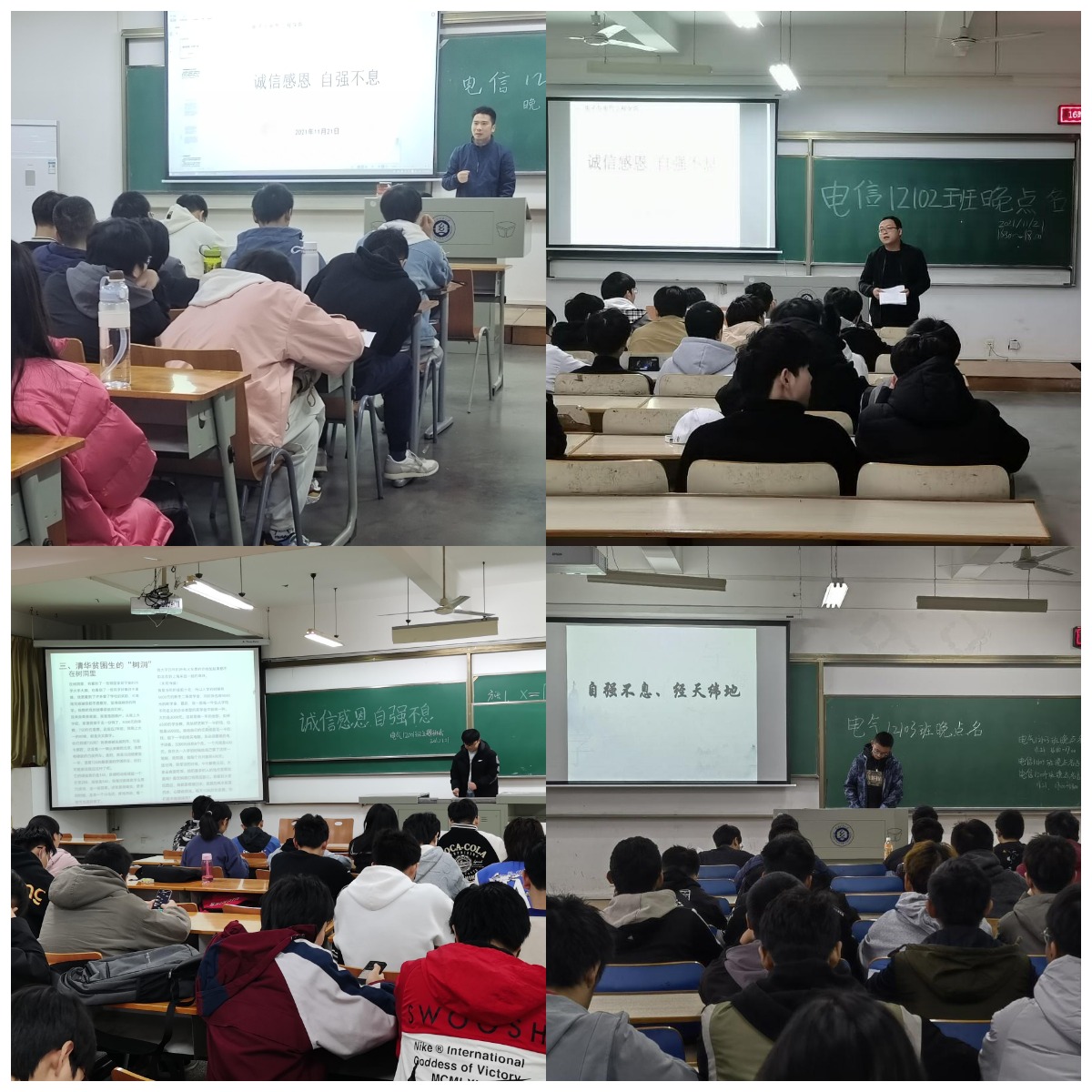 2021年11月21日晚,77779193永利官网组织各班召开“诚信感恩 自强不息”主题班会,学习先进事迹,心怀感恩之心,继承和发扬“经天纬地 自强不息”精神。