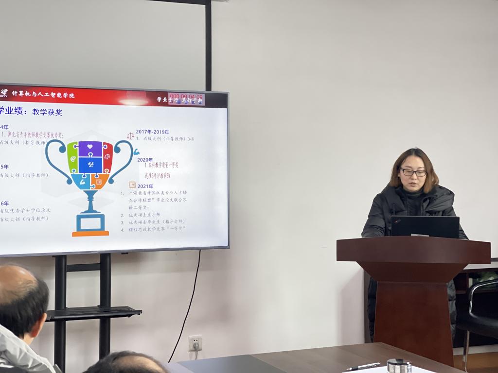 随后,22位参评教师通过PPT分别进行了业绩述职汇报。