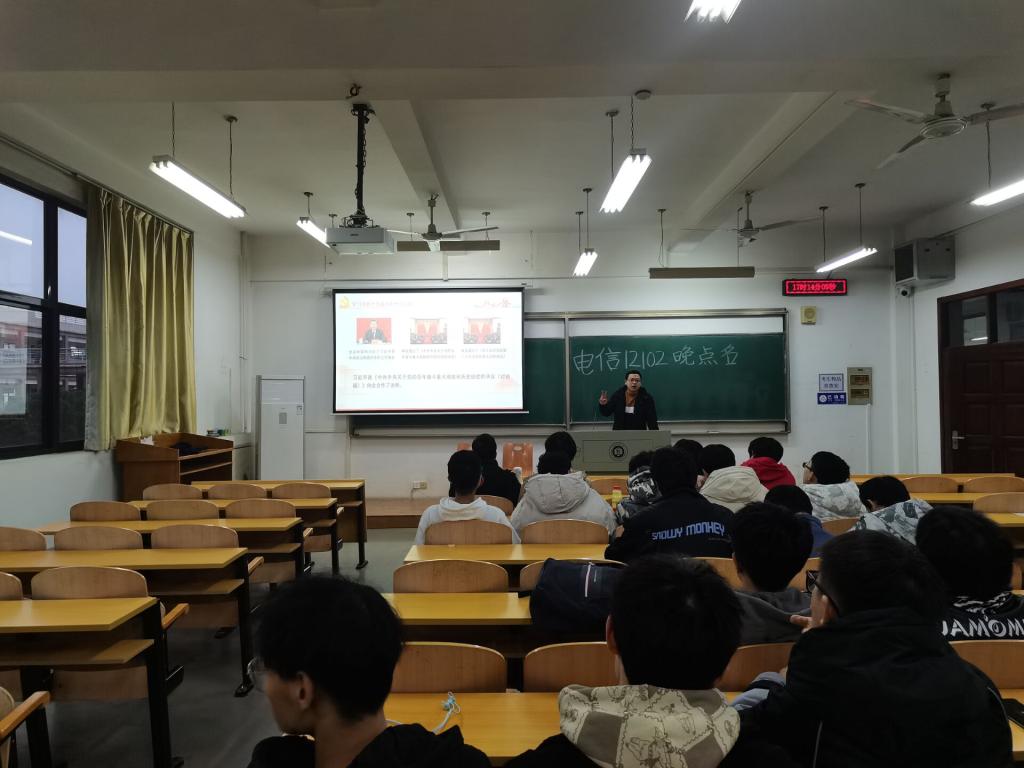 为进一步增强学生政治性、先进性,加强学生思想政治教育,12月5日晚,辅导员牟迪在电信12102班开展了学习党的十九届六中全会微团课。