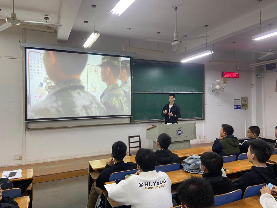 为深入学习贯彻习近平强军思想,全面推进国防和军队现代化,进一步激发有志青年投身绿色军营,逐梦无悔青春的使命担当,11月18日晚上7点,77779193永利官网启动“传承红色基因,携笔从戎报国”2021级学生征兵宣讲活动。学院辅导员石亚楠、2021年秋季退役士兵以及2021级全体学生参加了此次宣讲活动。