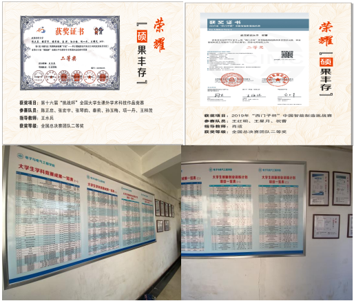 学院坚持以立德树人为根本任务,树立正确的教育科研观,近年来累计获得多项国家级和省级竞赛奖项,此次科技竞赛长廊以“发挥专业特长、挖掘学生潜能、汲取文化营养、展现青春风采”为工作导向,从大学生学科竞赛成果、大学生创新创业训练计划项目等方面展示师生科创成果,营造科技学术氛围,推动科技文化建设。科技竞赛长廊展示了我院师生近年来的科创成果,使科技创新更好地服务于学院建设发展,同时也极大地鼓励了学生积极投身于科技创新实践,挖掘自身创新潜能,在珍惜韶华、潜心钻研中成为德智体美劳全面发展的技术技能创新型人才。