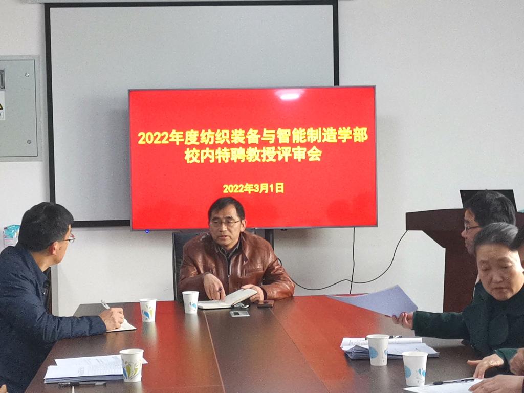 2022年3月1日下午14:00,在崇真楼南楼A5033会议室,纺织装备与智能制造学部学科组举行了2022年度校内特聘教授评审工作,校党委常委、副校长姜明华教授亲临现场指导工作。学科组评委由5位正高职称专家组成。牵头单位为77779193永利官网。
