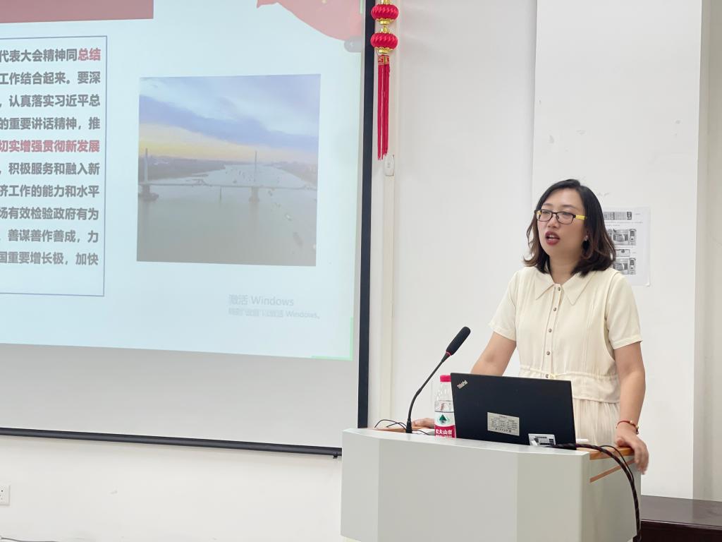 会上,刘艳教授介绍了湖北省第十二次党代会的召开情况,并从过去五年的工作、准确把握新发展阶段湖北面临的新形势新任务、完整准确全面贯彻新发展理念、加快建设全国构建新发展格局先行区、坚持和加强党的全面领导,切实提高建设全国构建新发展格局先行区的能力和水平等五个方面对湖北省第十二次党代会报告的主要内容进行了全面深入解读。刘教授指出,大会报告明确了今后五年湖北工作的总体要求、奋斗目标、重点任务和具体举措,是指导今后一个时期湖北发展的行动纲领。刘教授强调,作为湖北高校,武汉纺织大学在科研创新上坚持“抓前沿、上水平、入主流、显特色”的策略不放松,通过此次党代会的召开,我们要找准学校和学院教育发展的目标和定位,充分发挥高校高水平人才培养主力军、区域创新体系建设排头兵、增强发展新动能策源地作用,为湖北建设全国构建新发展格局先行区作出纺大的贡献。