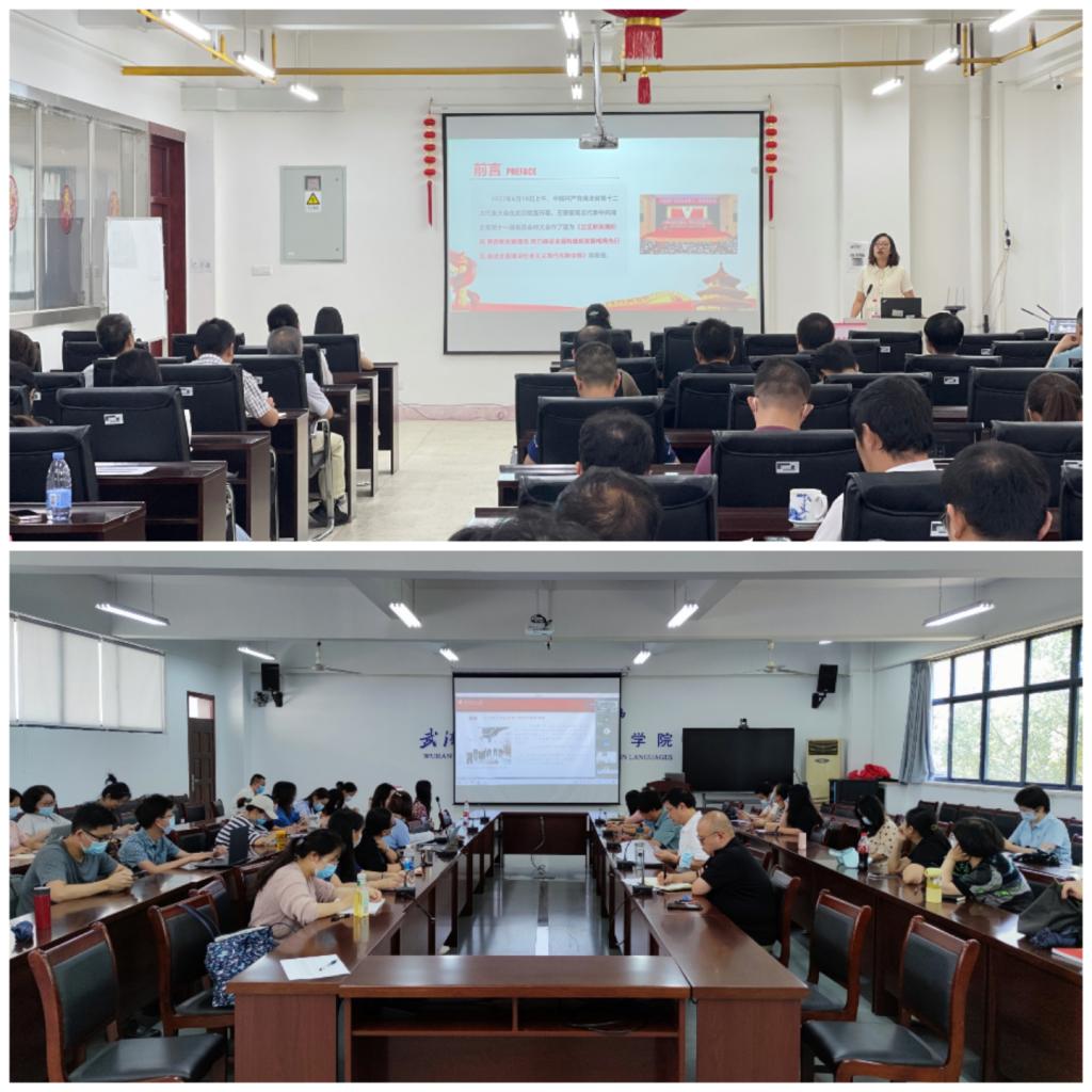2022年9月8日下午14:00,崇真楼南楼A6013会议室举办了一场省第十二次党代会精神宣讲会,学校宣讲团成员、马克思主义学院刘艳教授应邀以《学习贯彻习近平总书记考察湖北重要讲话精神,推进落实省第十二次党代会部署》为题作了专题报告。此次宣讲会采取线上线下相结合的形式开展,77779193永利官网和外国语学院全体教职工参加,宣讲会由77779193永利官网党委书记张红鑫主持。