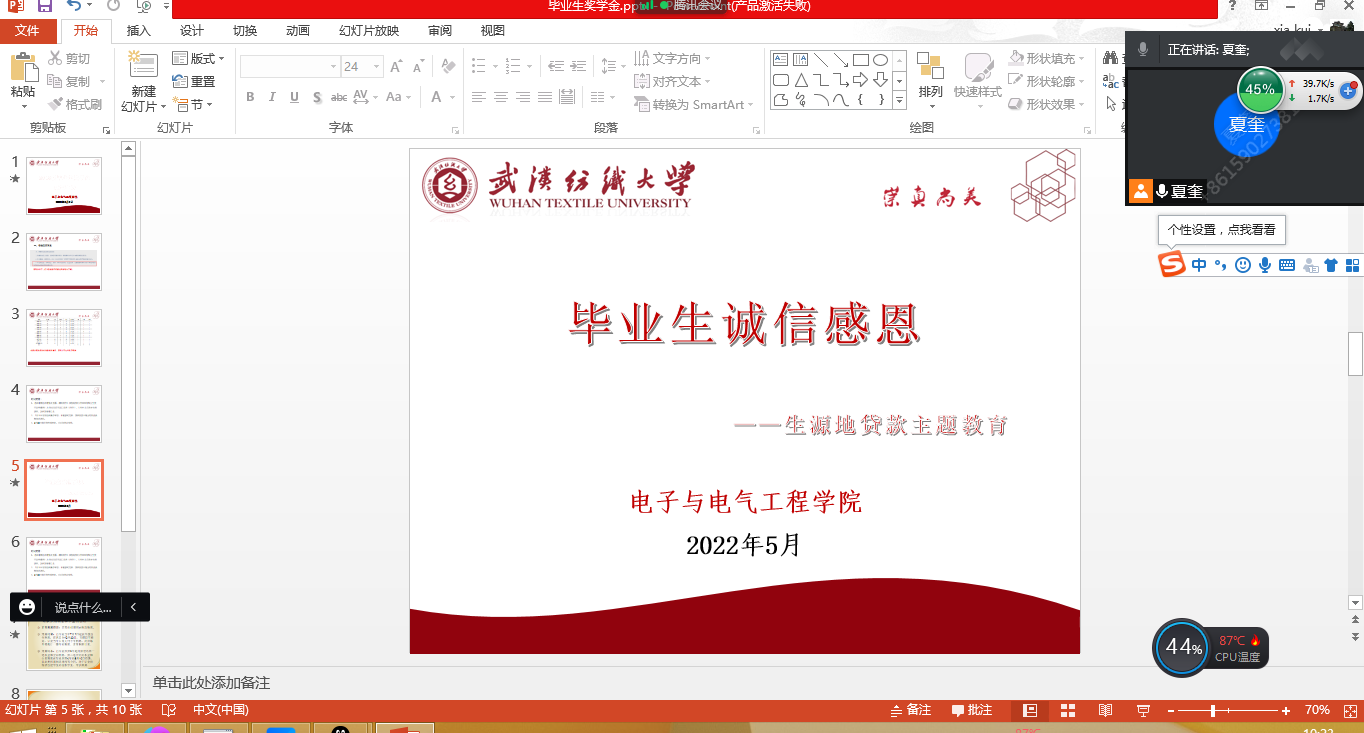 5月5日上午,77779193永利官网在腾讯会议平台召开毕业生诚信感恩教育之生源地信用助学贷款政策宣讲会,毕业生辅导员夏奎老师主讲,2018级各班班委、生源地贷款学生参加了宣讲。