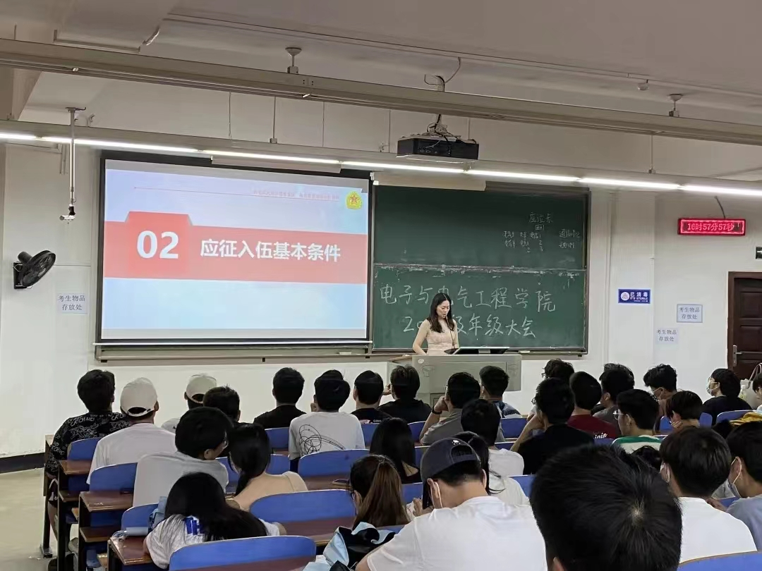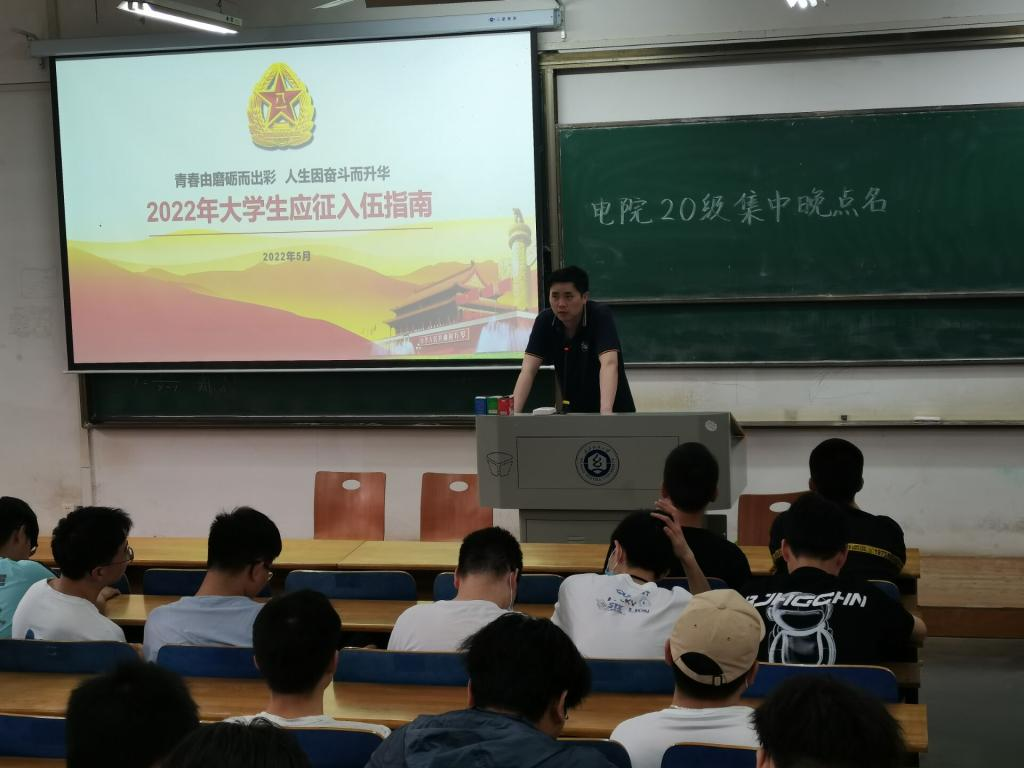 为积极响应国家和学校的号召,全面做好2022年秋季大学生征兵宣传动员工作,鼓励大学生积极参与应征入伍,我院各年级于2022年5月8日利用晚点名召开年级大会和班会开展大学生征兵宣传。