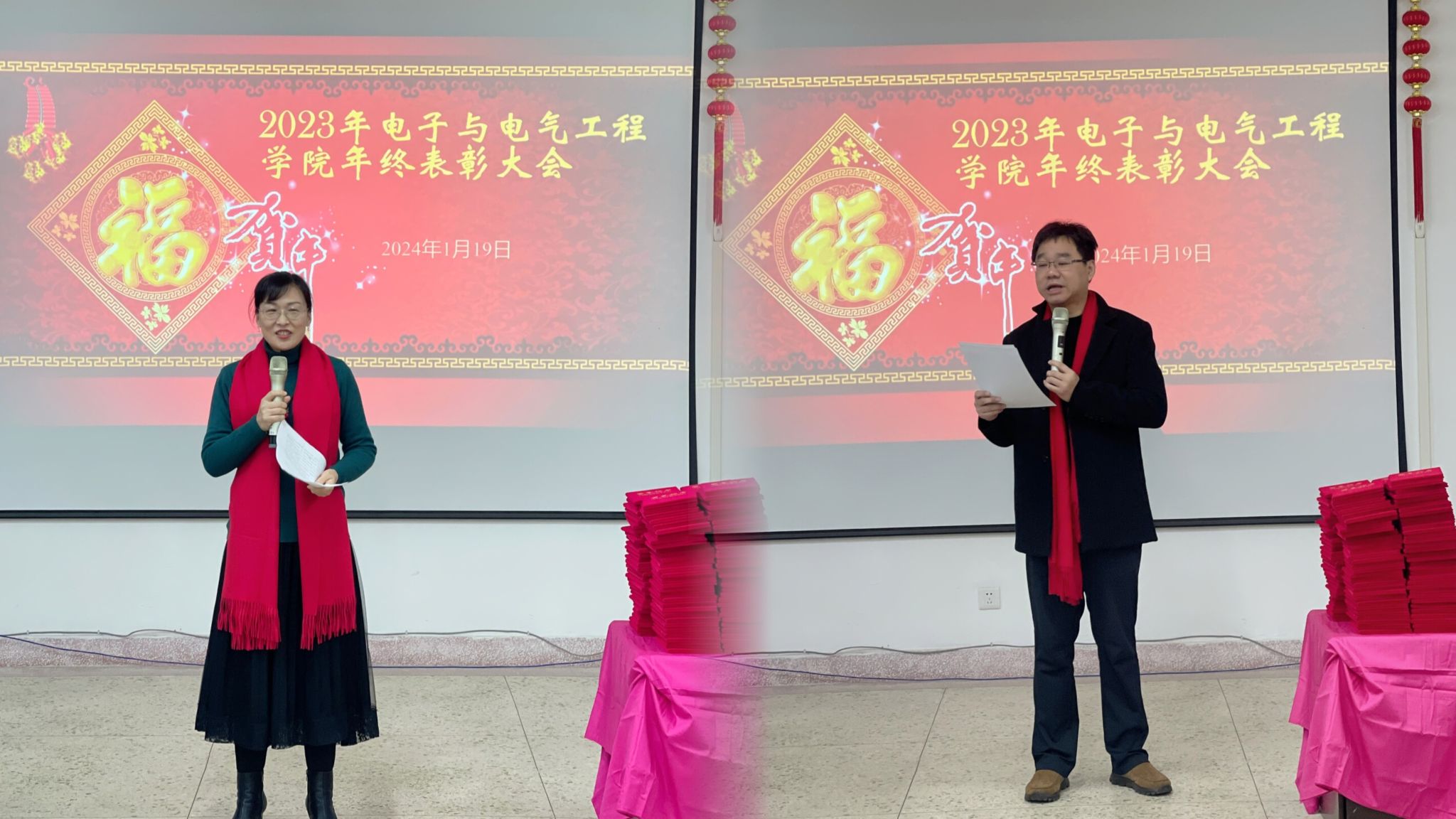 刘侃代表学院总结了2023年各项工作,通报了年终分配事宜,向全体教职工一年来辛勤付出表示衷心地感谢。张红鑫代表学院进行致辞,她表示,2023年是学院蓬勃发展的一年,在学校党委的关心指导下,在全院师生的共同努力下,学院教学科研、审核评估、人才培养、人才引进、学生工作等各方面均取得了可喜的成绩。她代表学院领导班子,向这一年里为学院教育教学管理服务努力工作、为学院安全稳定无私奉献的全体教职工表示衷心感谢。她强调,展望2024,我们任重道远,学院全体上下还需继续开新篇、谋新局、启新程,笃定目标、守正创新,为推动学院发展再上新台阶而不懈努力。