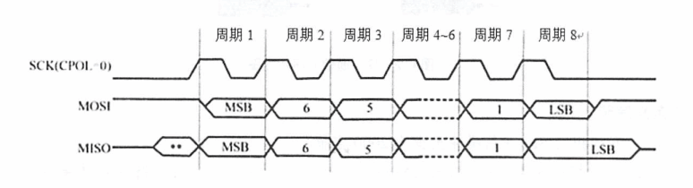 时钟极性(CPOL=0),串行同步时钟的空闲状态为低电平;