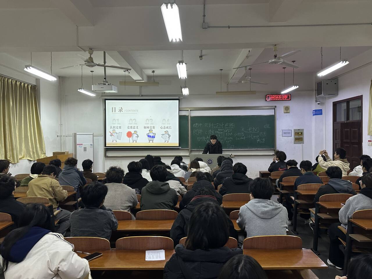 在现场问答环节,新生们踊跃提问,就自己关心的竞赛细节、时间规划及可能遇到的困难等问题与学长们进行了深入交流。现场气氛热烈,思维的碰撞激发出同学们浓厚的兴趣。