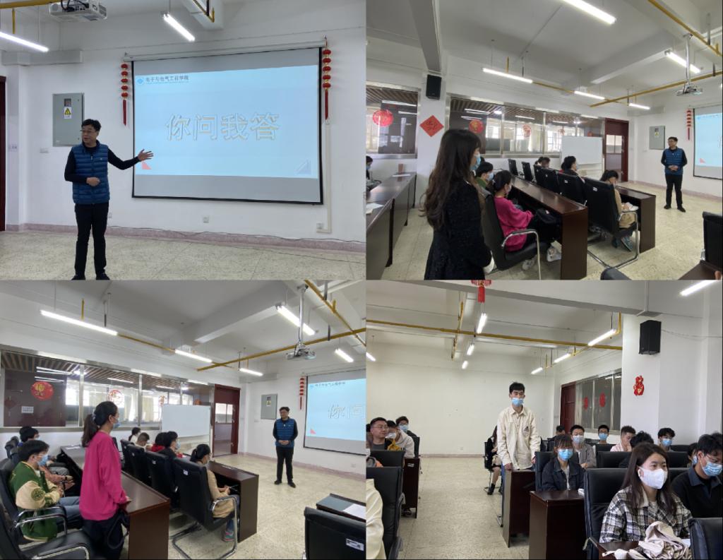 “你问我答”环节,同学们踊跃参与,现场气氛活跃。“选择考研学校或者考研导师的时候,要结合自身特点和学科发展态势,发挥主观能动性,充分做好调研和准备。”刘院长如是讲到。刘院长鼓励大家要在学习中打好基础,培养学习能力,同时找到自身兴趣点,拓展专业知识面,实现差异化竞争,从而完成弯道超车;在学习之余多参加社团,多探索生活,多结交朋友,提升自身思考问题、辨别是非的能力,树立专业报国的伟大抱负。
