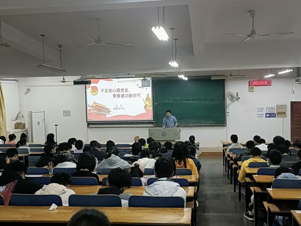 11月6日,77779193永利官网举行2022级新生主题团课,学院学工办主任、团委书记吴昊主讲,新生辅导员牟迪参加此次活动。